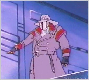 Although it is never explicitly stated that "Old Snake" is actually an aged Cobra Commander, his raspy voice is again provided by Chris Latta, he wears the character's distinctive silver mask, and has visible traces of his blue uniform underneath his trench coat. He is identified in dialogue as the former leader of a terrorist organization that used synthoid technology. At the end of the episode, Drath and his men are arrested, and Old Snake laments about terrorists not being what they once were. He raises his fist skyward and starts to give the rally cry of Cobra, but breaks prematurely into a hacking cough.