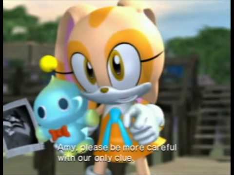 At one point, Amy gives Cream and Vanilla a tour around the headquarters of the Freedom Fighters, a heroic team of which Amy, Sonic, and Tails are among the members. NICOLE, Amy's computer assistant, interrupts Amy to tell her of a strange energy signal in a forest. Amy apologizes and leaves to investigate, and Cream enthusiastically comes too.[24] There, they meet Blaze for the first time and help her look for the Sol Emerald she has lost. In various scuffles, the Emerald changes hands a few times among four parties: Cream, Amy, and Blaze; E-123 Omega, Shadow, and Rouge; Nack the Weasel;[25] and the Babylon Rogues.[26] Blaze defends Cream and Amy with her flames while they recapture it. Blaze successfully obtains the Emerald, says goodbye to Amy and Cream, and returns to her world.[27] During the invasion of New Mobotropolis by Eggman's robot Titan Metal Sonic, Cream is fearful but runs to protect the unconscious Bunnie Rabbot from falling wreckage.[28] She also recovers a doll version of Tails,[29] which later turns out to be a robotic spy for Eggman.[30]