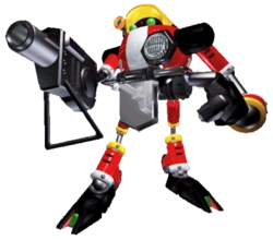 The E-Series is a fictional group of robots in the Sonic the Hedgehog series of video games. They are created by the games' antagonist, Doctor Eggman (or Dr. Robotnik) who uses them in his quest to conquer the world. They are higher tier enemies than normal badniks, and are used by Eggman as a kind of elite trooper. The E-Series is the last series of Eggman's robots to use captured animals as a power source (with some exceptions, see below) - with more recent efforts such as the mass-produced Egg-Pawn series, Flickies are no longer used. The E-Series' first appearance was in Sonic Adventure in which E-102 Gamma is a playable character.