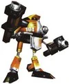 E-10000G (called Robo 2 on the official American website) is very similar to his "brother", except it is green, has its "cap" on a different way, and is massproduced. According to the Japanese website, E-10000G was created as a work robot for the Egg Factory level, but was massproduced due to its mobility, and has an efficient data processing ability.[4] E-10000G is a power type character in the game. However, when met as opponents in Story Mode, E-10000G has the powers of speed, flight, and power characters, likely to make the game harder. In Story Mode, E-10000G robots will fill the spots not used by other characters such as Sonic or Jet. They will also have numbers from 01 to 07 (or 06 if there is another prominent opponent) on their backs.
