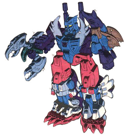 The Seacons were brought to Earth by Shockwave to put their undersea adeptness to use fortifying the Decepticons’ sub-aquatic island headquarters. Outfitted with Earth modes by Shockwave, the Seacons were going about their task when they met with their first challenge, which also proved to be one of their greatest – they were ordered to defend the island against the insane, time-travelling future Decepticon, Galvatron. The Seacons gave a good account of themselves, merging into Piranacon (misspelled "Pirranacon" in the story) for extra power, but ultimately, the team was defeated by their stronger adversary, only for Galvatron to reveal that he had not planned an attack at all, merely wishing to talk. Now, however, he claimed that Shockwave had made an enemy of him – although it was all part of a plan to destabilise his leadership. Seeking a weapon that could truly combat Galvatron, Shockwave sought out the former Decepticon leader, Megatron, who had been missing in action for some time. When what was believed to be his body (but was, in actuality, a clone of him) was located in the Thames river by entrepreneur Richard Branson, Overbite (called Jawbreaker in his UK appearances) was dispatched with some of the Decepticon jets to bring the body to Shockwave. Snaptrap subsequently repaired the clone’s physical damage, and aided Shockwave in using the psycho-probe to brainwash it into his service.