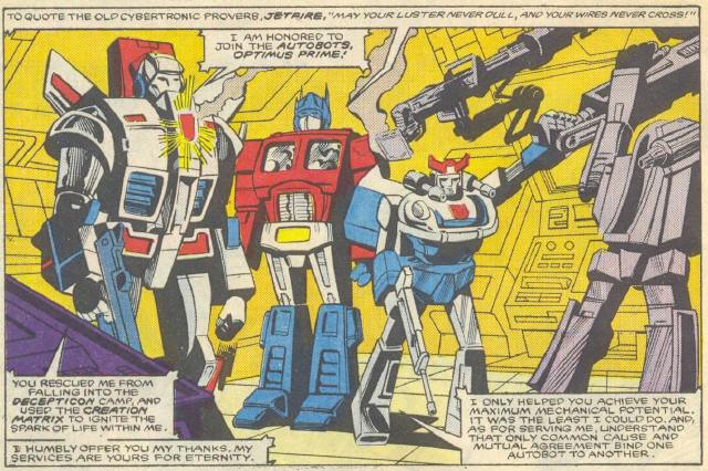 [[ |250px]]An early reference to the "spark of life" from Marvel Comics' Transformers #14. | |