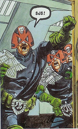 In other strips, they have been a more neutral force or on Dredd's side. In "Tour of Duty", it was the SJS who stormed in and arrested Chief Judge Sinfield after proving he had used criminal means to gain power.[12]