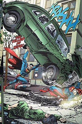 [[File: |250px]]Superman. Also pictured; Earth-Two's Lois Lane, Superboy-Prime, and Alexander Luthor, Jr. Art by Phil Jimenez | ||